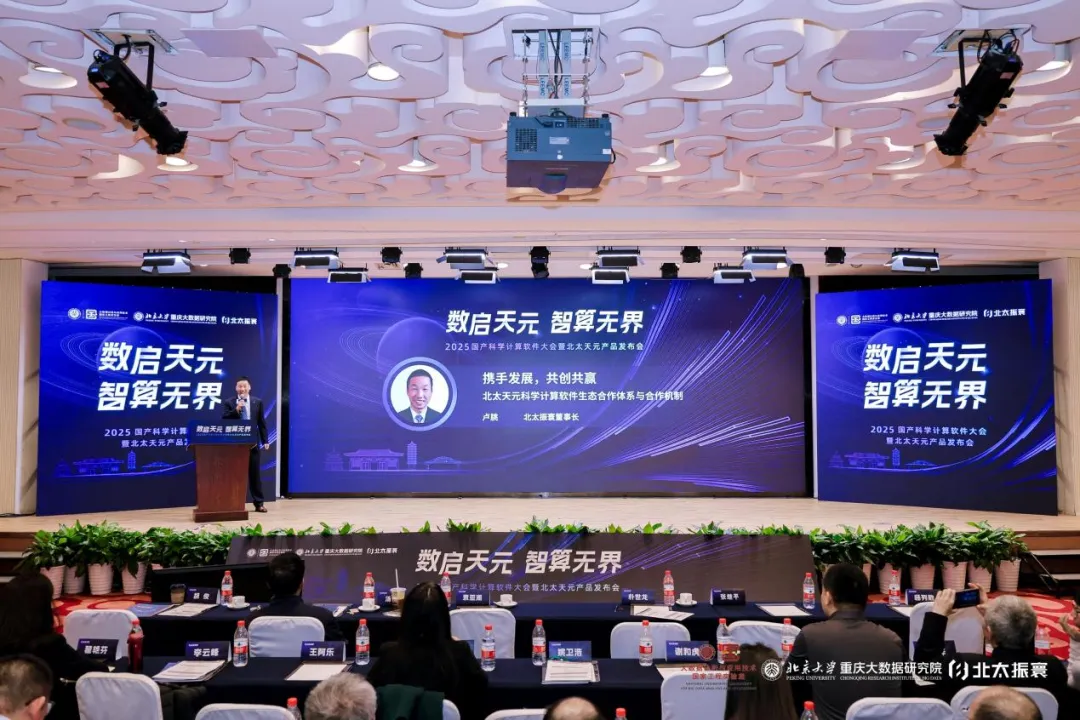 11月15日,“数启天元,智算无界”2025国产科学计算软件大会暨北太天元产品发布会在北大博雅国际酒店盛大举行。本次大会在中国工业合作协会、中国工业与应用数学学会高性能计算与数学软件专业委员会、中国工业合作协会仿真技术产业分会、北京大学科技开发部、北京大学计算中心的共同指导下,由北京大学大数据分析与应用技术国家工程实验室、北京大学重庆大数据研究院(以下简称“研究院”)联合主办,北太振寰承办。政府嘉宾、多位院士、高校专家、行业领袖齐聚一堂,共绘国产科学计算软件发展蓝图,共同见证北太天元2025新版本发布这一行业盛事。