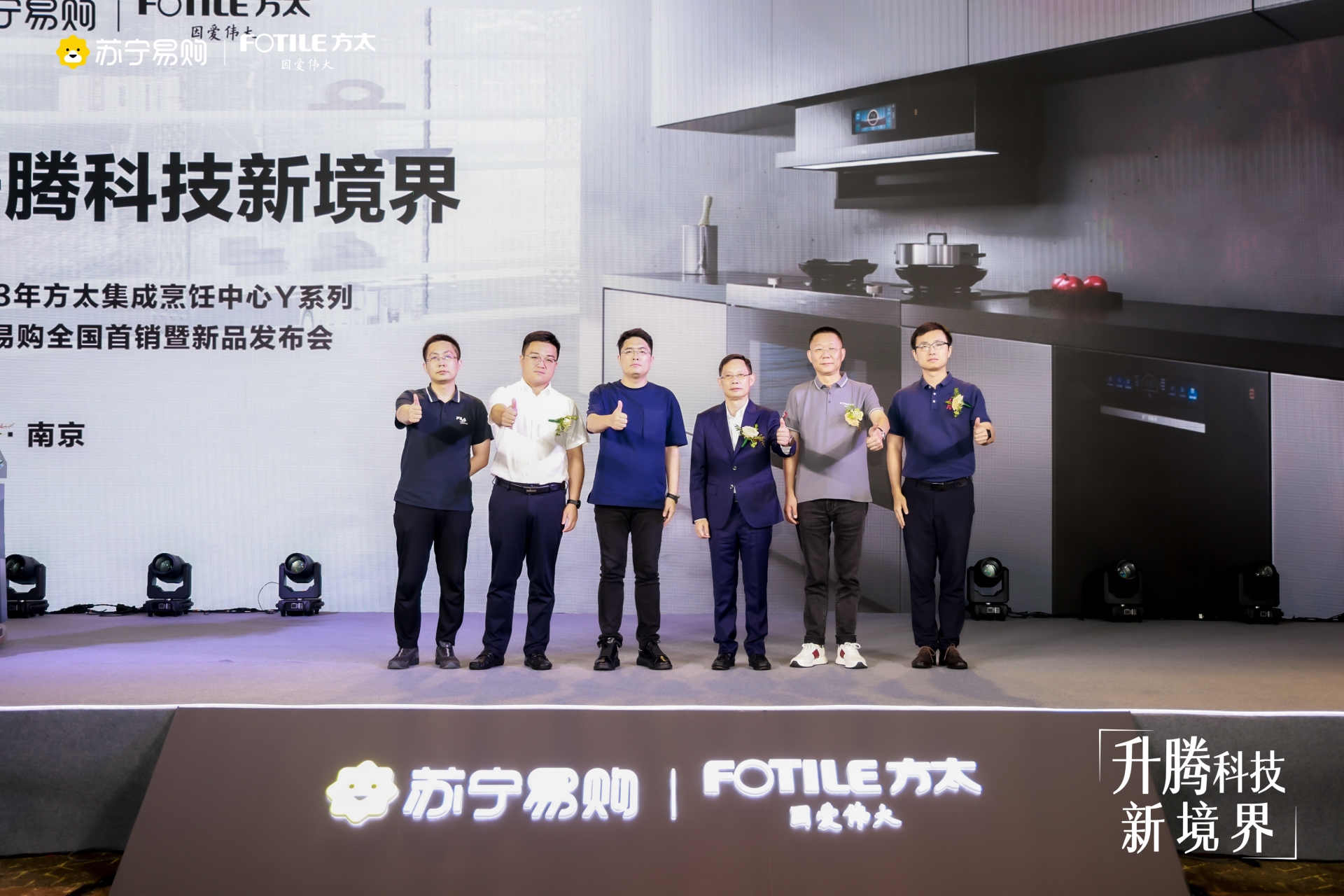 2023年9月15日,方太集团携手苏宁易购以“升腾科技新境界”为主题,隆重开展了“方太集成烹饪中心Y系列新品发布会暨苏宁易购全国首销”专场活动。现场重磅发布了集成烹饪中心Y系列烟机、灶蒸烤、嵌入式洗碗机,进行了详细的产品介绍。此次发布会特别邀请了苏宁易购厨卫公司总裁柳赛、苏宁易购南京大区副总经理孙钦龙、苏宁易购厨卫公司经营中心总经理王金辉;方太集团KA业务部总监肖俊、方太集团南京分公司总经理周杰、方太集团南京分公司副总经理莫璟程、方太集团KA加盟模块高级经理郝海翔、方太集团烹饪厨电产品线高级产品经理邵海忠、方太集团洗碗机产品线高级产品经理潘嘉威出席此次发布会。